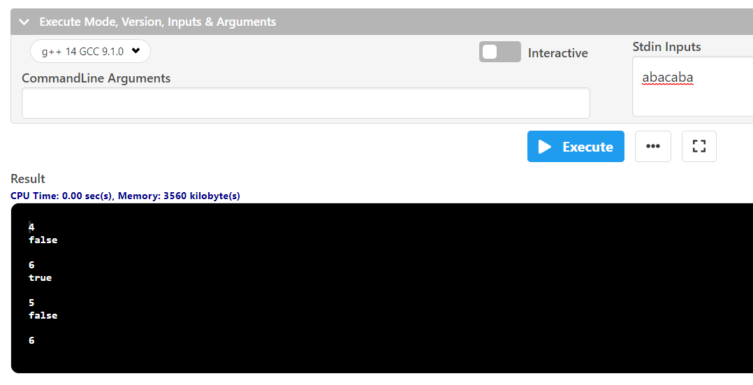 마지막으로 모든 과정이 다 끝나면 check 배열을 확인한다. check 배열에 1이 있으면 그 문자는 계속 나타난 것이므로 true를 반환한다. 만약 check 배열에 1이 없으면, 즉 전부 0이라면 그때는 false를 반환한다.