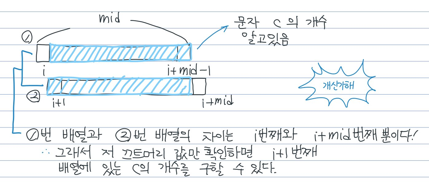 맨 처음 부분 배열에 있는 문자 개수를 알면 다음 부분 배열에 있는 문자 개수는 O(1)에 구할 수 있다. (아니 어떢게?)