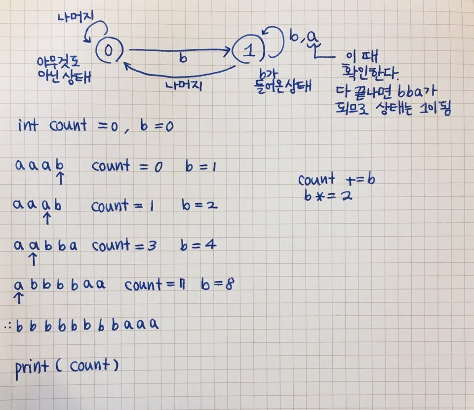 음.. b는 항상 2배로 늘어나고 변환 횟수는 b 개수를 세는 거라 위와 같이 숫자가 변하면 될꺼라 생각했다.