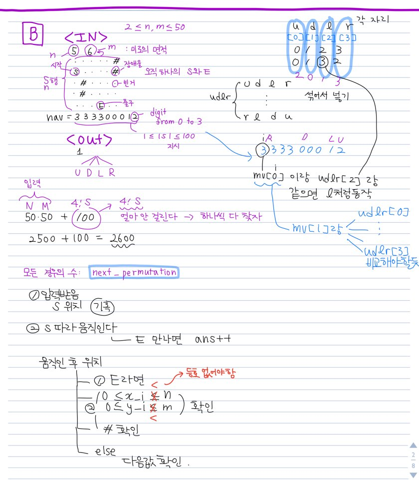 알고리즘까지는 바로 구현했는데 udlr 4!번 비교하는 데서 문제였다. 4! 섞어서 비교하는데?? 이거랑 mv 문자열이랑 비교를 어떻게 하지?? 싶었지만 어찌저찌 해결했다.