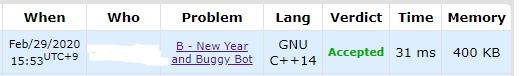 | [코드포스 Practice12] A. k-rounding (0) | 2020.02.28 |