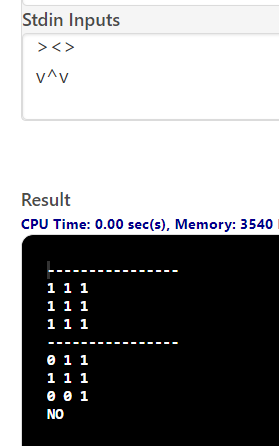 만약 0이 있다면 그건 갈 수 없는 곳이 있다는 뜻이므로 "NO" 출력하고 종료.