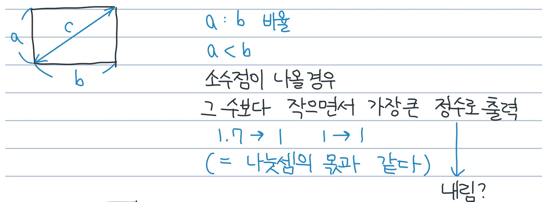 문제를 읽고 정리했다. 배운 강정, 이제는 floor 안 쓰고 몫으로 계산하려 하고있다.