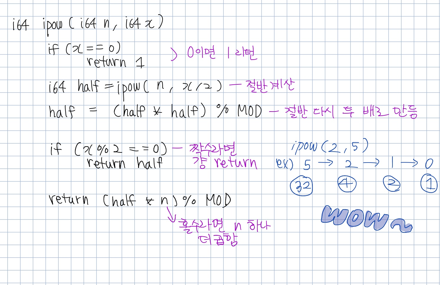 i64 half = ipow(n, x / 2);