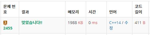 큰 건 아니지만 이렇게 비교해서 넣는 걸 max를 쓰면 더 깔끌하게 짤 수 있다. 게다가 몰랐는데 전에 쓴 코드를 수정 안 해서 long long과 a[1000000]이 남아있었다. ㅋㅋㅋ 어쩐지 메모리를 많이 잡아먹더라