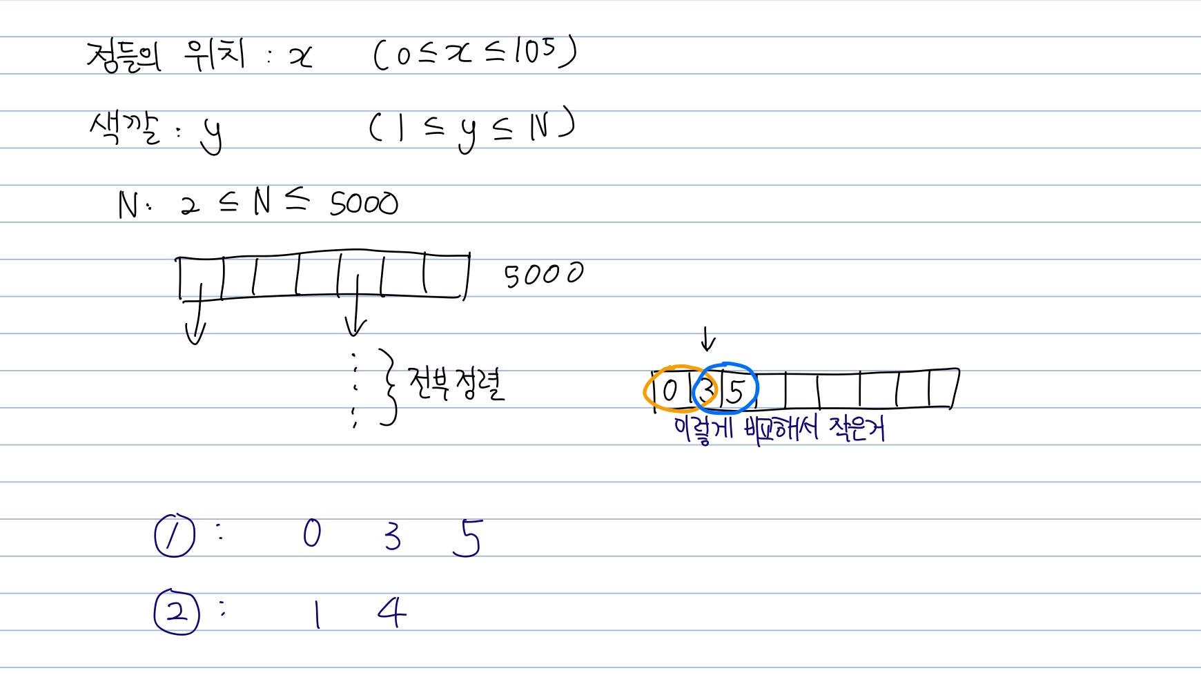 먼저 색깔별로 저장하는 배열을 만들어 두고 색깔별로 위치를 입력 받는다.