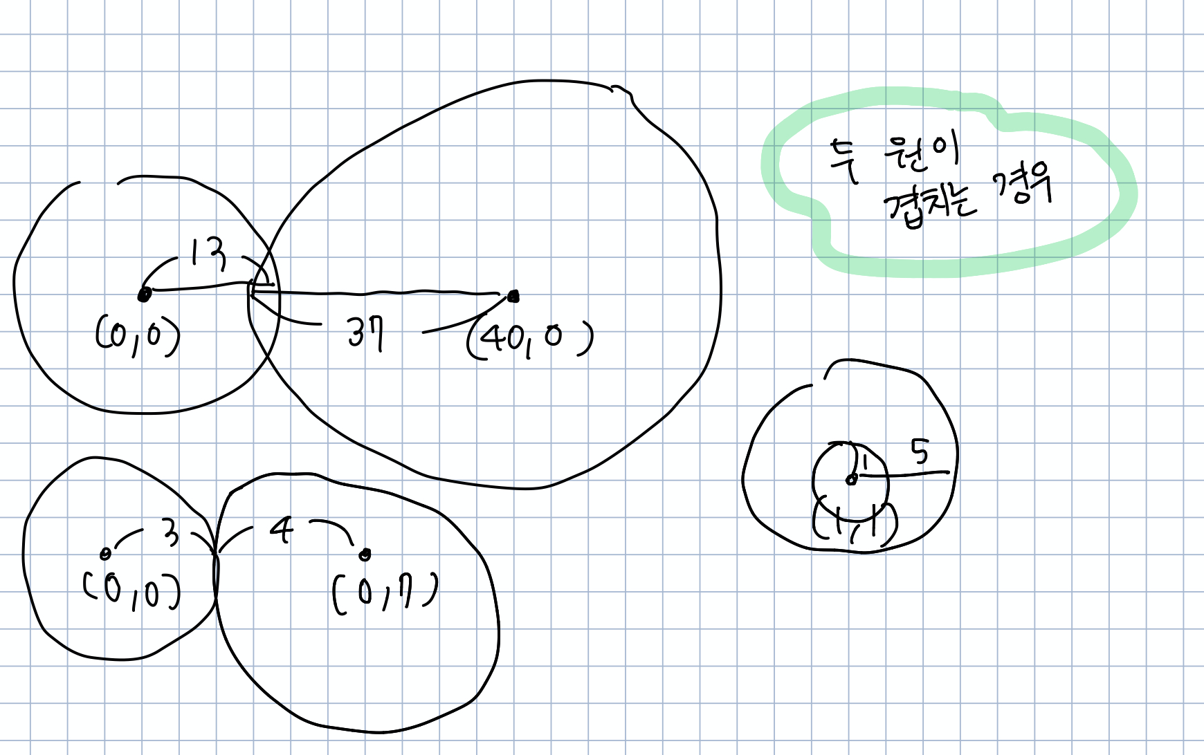 문제 파악해보니 두 원이 주어졌을 때 원의 교점을 구하는 문제였다. 허어어... 퇴근하고 운동하고 플젝하고 푸는거라 개피곤하다... 내일 아침에 풀겠음