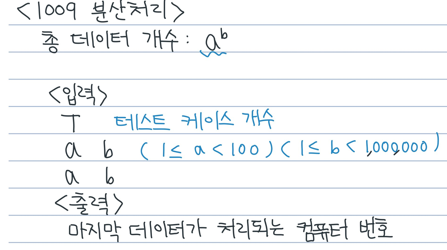 입력을 정의해봤다! 처음에 문제 이해 잘못해서 아.. a가 컴퓨터 개수고 b가 데이터인가? 싶었는데 아니었다.