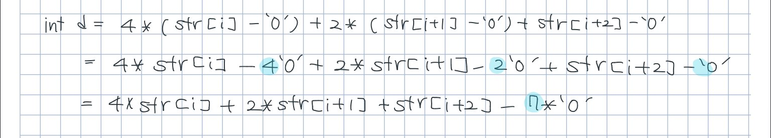 int d = 4 * str[i] + 2 * str[i + 1] + str[i+2] - 7 * '0';