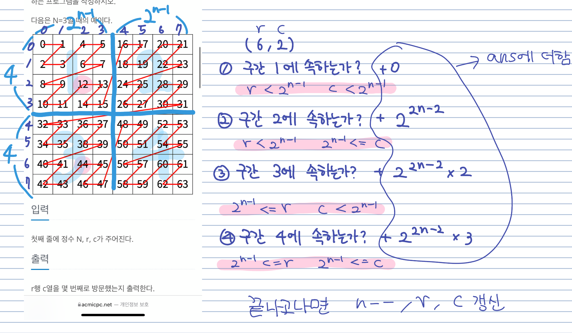 if (r < half && c < half) { // 구간 1