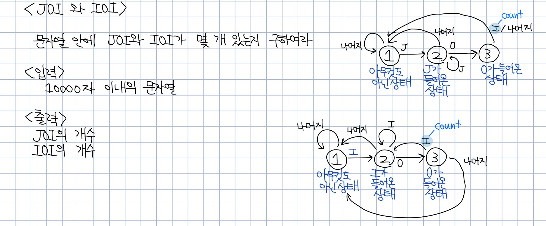 이렇게 하면 처음부터 문자 3개씩 잘라서 JOI와 IOI와 같은지 비교한다