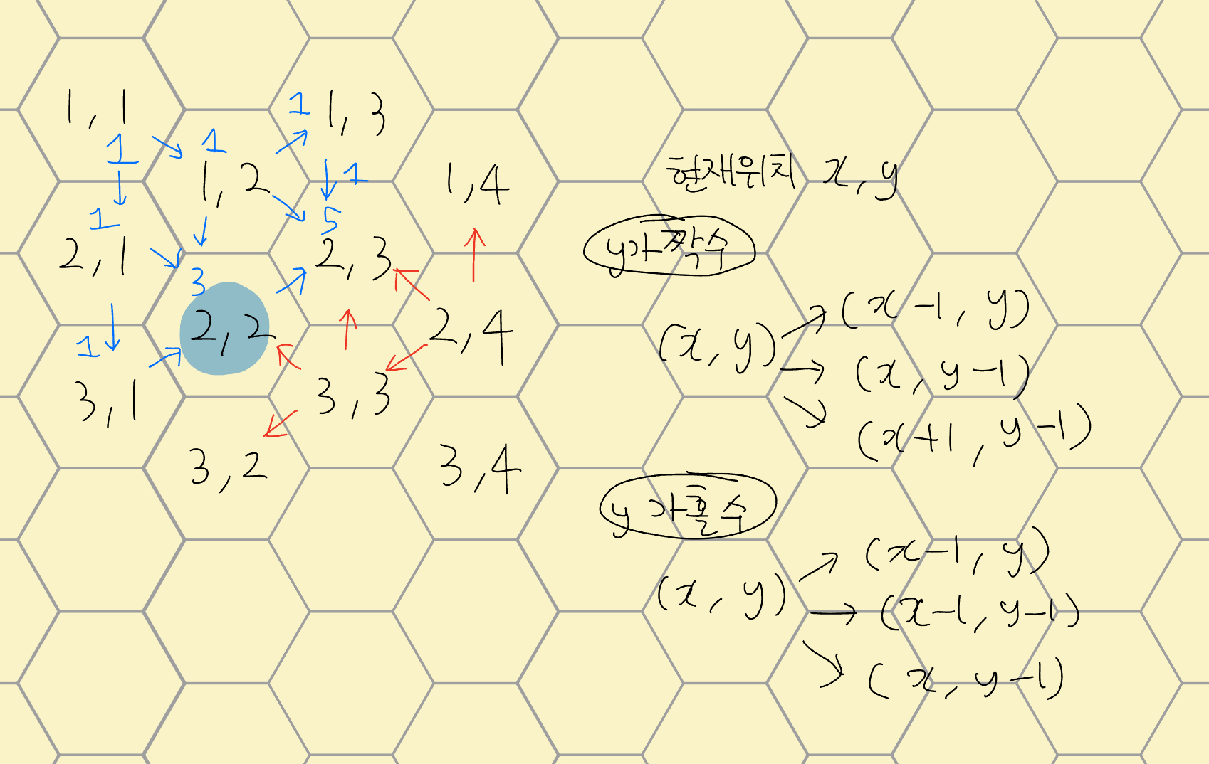 참고로 y가 짝수냐 홀수냐 따라서 움직일 수 있는 좌표가 달라진다.