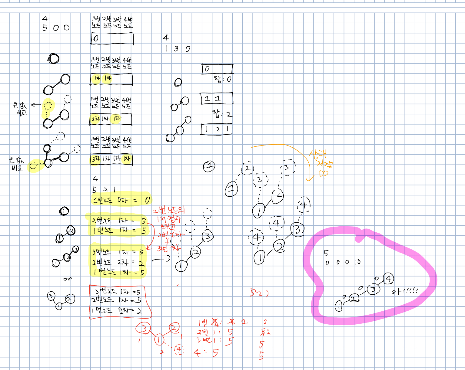 가장 최대가 될 수 있게 노드를 붙이다가 0 0 0 10 예시에서 틀렸다는 걸 알았다.