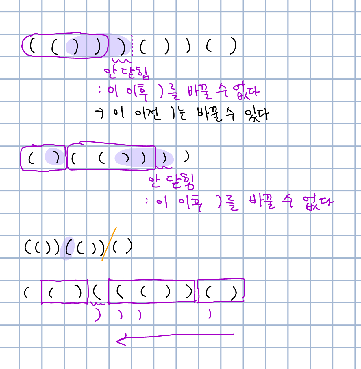 위의 그림처럼 닫을 수 없는 ')'가 생겨난 이후부터 )를 (로 변환할 수 없다