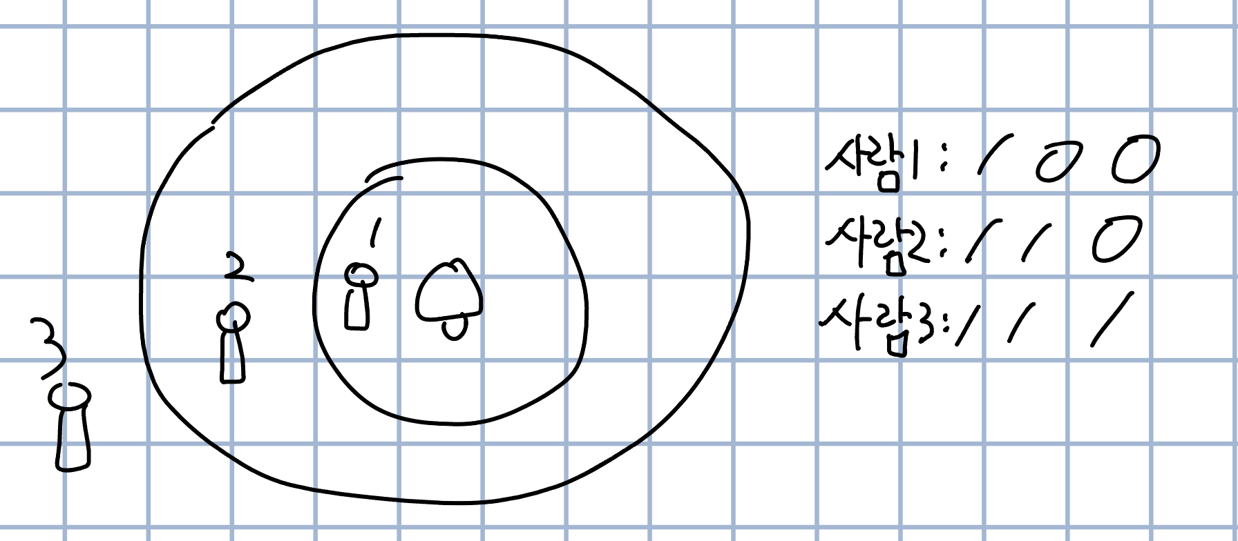 1번 들은 사람이랑 2번 들은 사람이 있다고 했을 때 나올 수 있는건