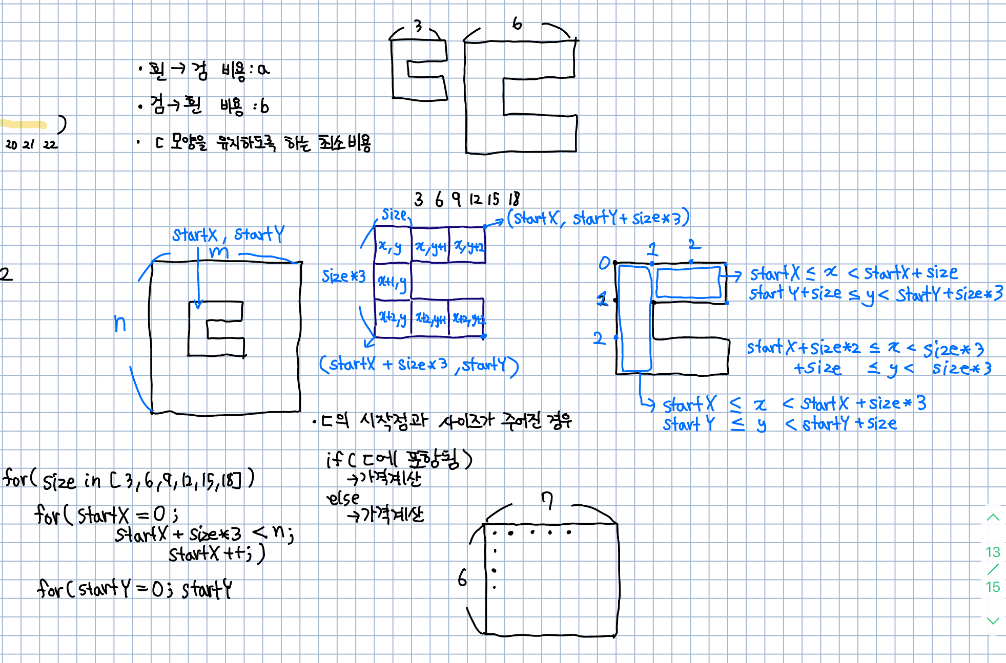 for (int startX = 0; startX + size*3 <= n; startX++) {