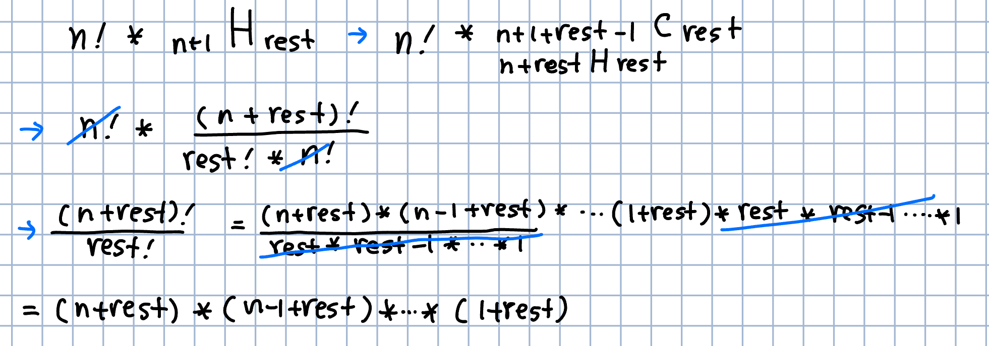 빈칸을 일정 사이사이에 넣는 경우의 수는 중복 조합으로 구할 수 있다