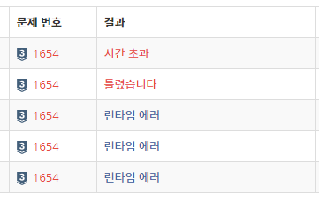 ㅋㅋㅎㅎㅋㅋ 이번에는 시간초과로 틀렸다. 컴파일 에러랑 메모리 초과만 모우면 모든 에러를 다 만날 수 있다. 야호
